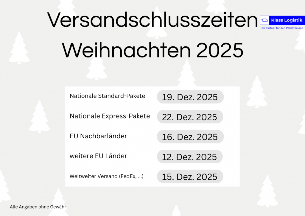 Aufgrund des Saisonzuschlag von DPD müssen wir die Preise zwischen dem 1. November und dem 31. Dezember anpassen. Die Preise für Ihre Weihnachtspakete: